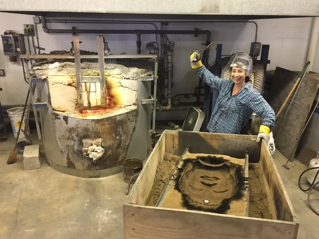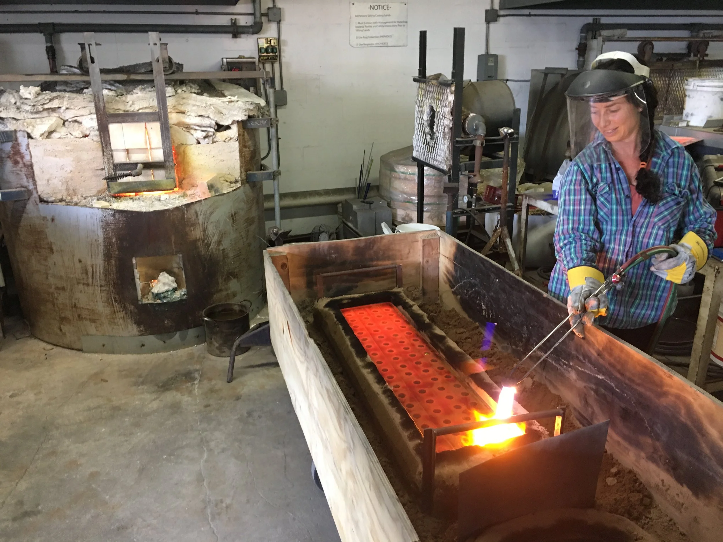 Unfortunately, there are no pictures of the team putting these massive castings into the annealer as it took the everybody in the studio to hoist them carefully into place, so no one was available to document this part of the process. Getting 900 degree castings into screaming hot giant ovens without bumping corners, tipping them over, or otherwise damaging them (and without people getting burned!) is a critical part of the operation and the difficulty is exponentially increased when castings are large and unwieldy.