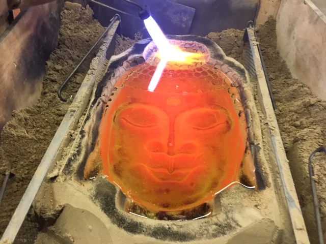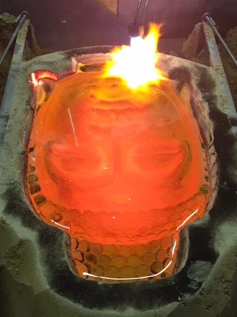 Sneak peek at the Buddha head almost ready to come out of the annealer!